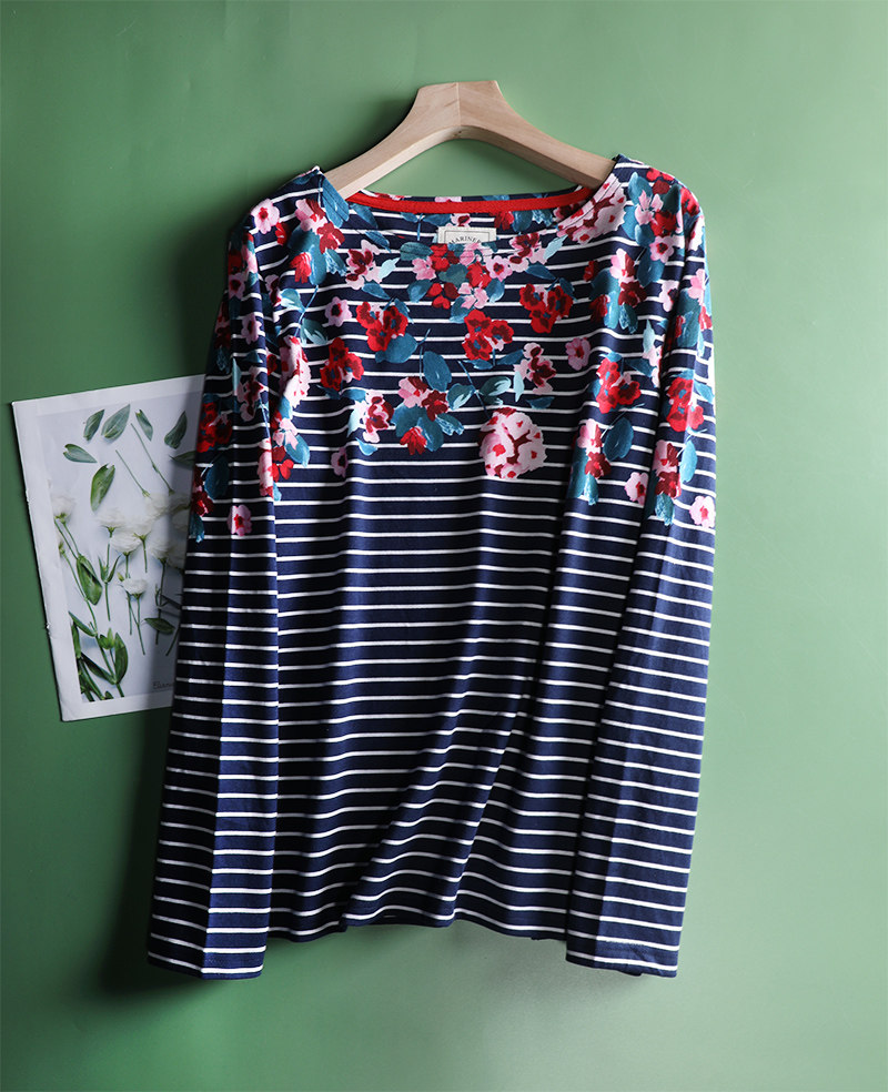 2025春夏新款 纯棉针织厚实印花英伦田园碎花打底衫女长袖大码潮
