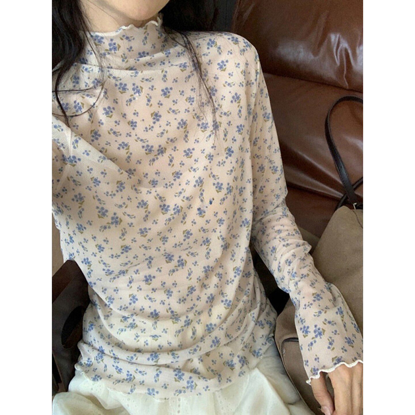 iuui·le 自制复古碎花打底衫女上衣薄纱2026新款叠穿休闲半高领
