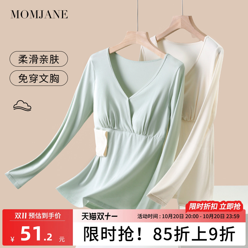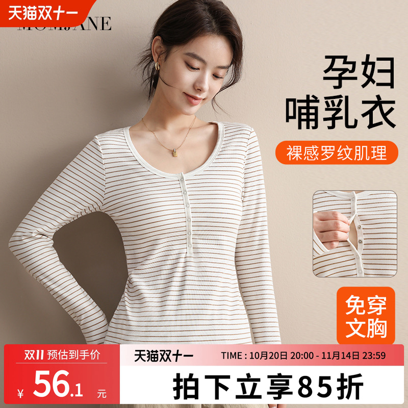 哺乳秋衣上衣孕妇保暖内衣打底衫春秋款产后喂奶带胸垫月子服潮妈