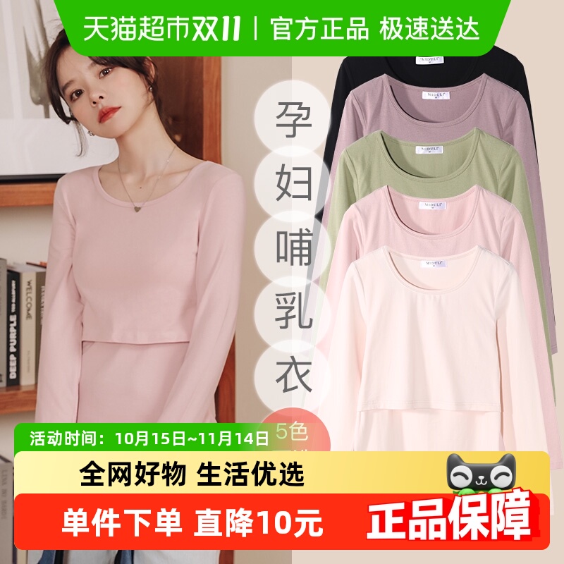 哺乳上衣秋衣单件莫代尔长袖孕妇装打底春秋款喂奶免穿内衣可外穿