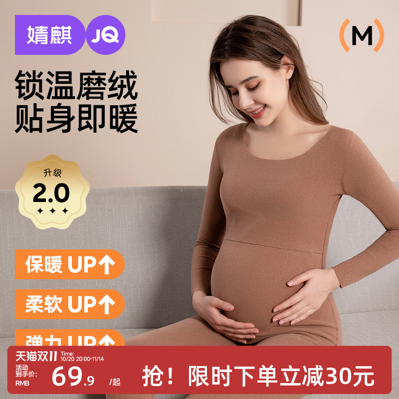 婧麒孕妇保暖内衣上衣秋衣秋裤套装加绒秋冬打底衣产后哺乳睡衣女