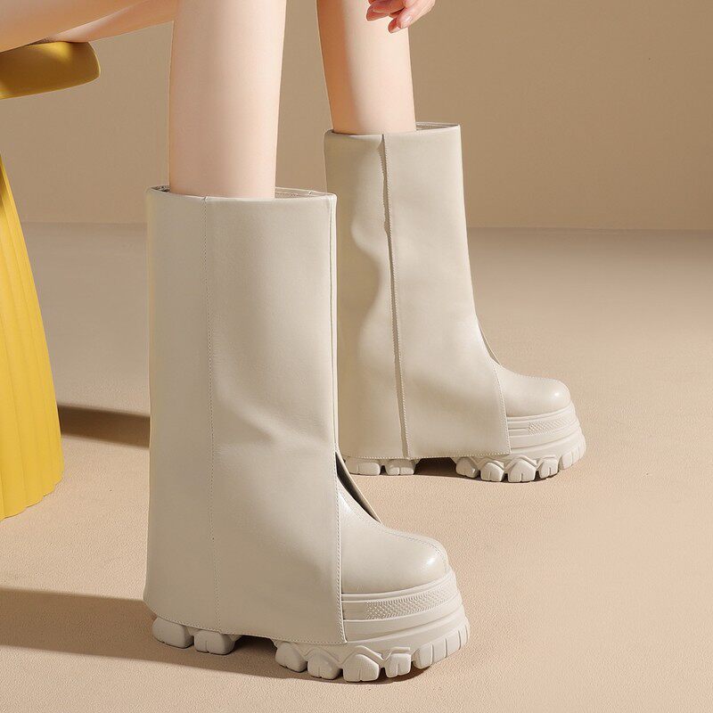 - 真皮厚底内增高短靴