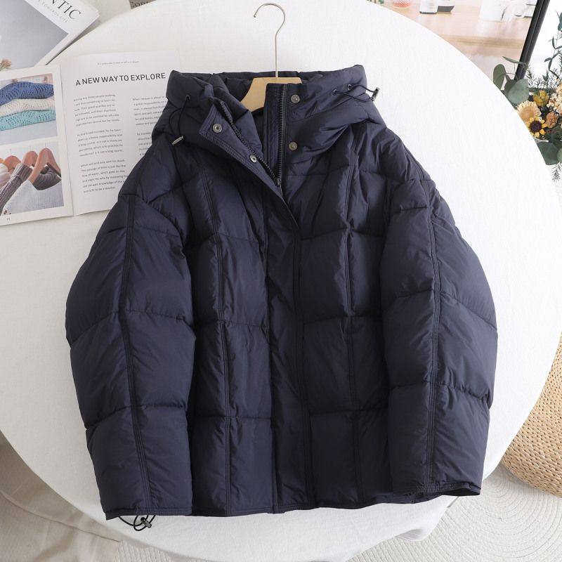 恋小维女装宽松保暖连帽羽绒服女2025冬季新款加厚藏青面包服外套
