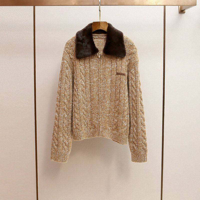 恋小维高端女装25冬季新款韩系小香风撞色翻领贴布毛衣针织衫外套