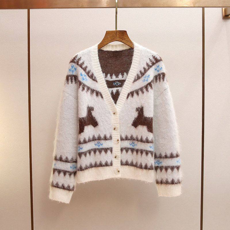 恋小维女装2025秋冬新款时尚宽松显瘦费尔岛提花针织开衫毛衣外套