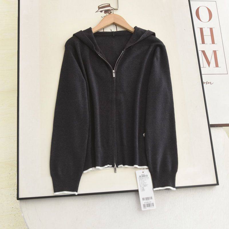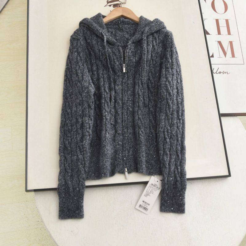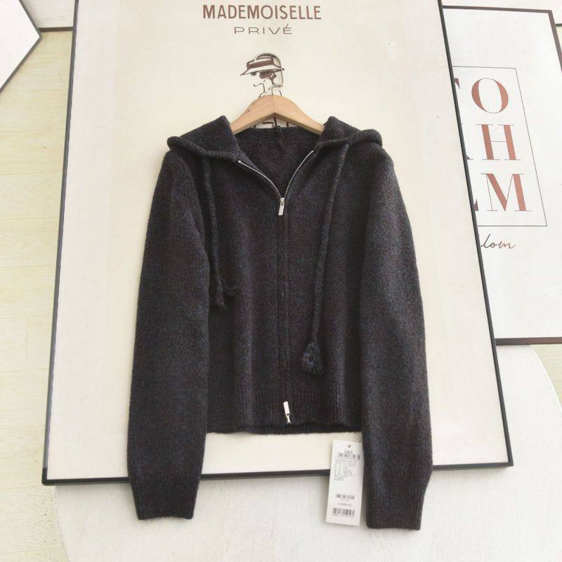 恋小维女装の2025秋冬新款气质连帽灰色毛衣洋气针织开衫外套