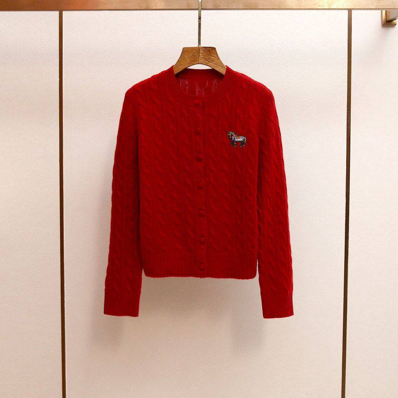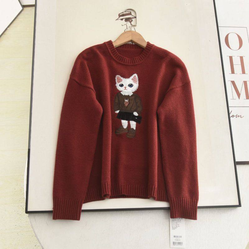 恋小维女装の2025秋冬新款气质减龄猫咪提花红色套头针织衫毛衣