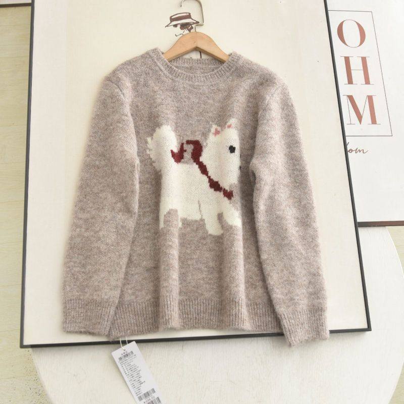 恋小维女装软糯马海毛2025冬款气质可爱小狗提花毛衣设计套头针织