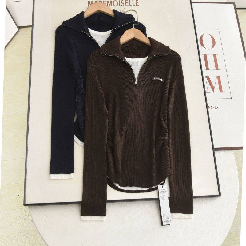 恋小维女装2025秋冬新款撞色拼接假两件毛衣修身显瘦针织衫上衣女