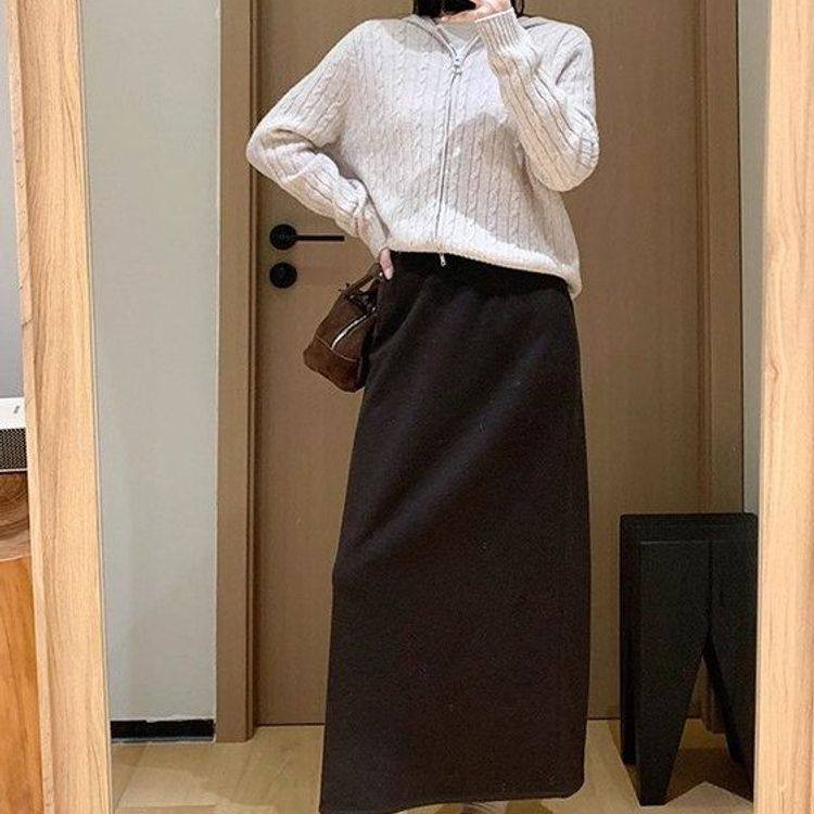 恋小维 2025秋醋酸羊毛瘦瘦直筒裙毛呢混纺后中开叉新款半身裙女