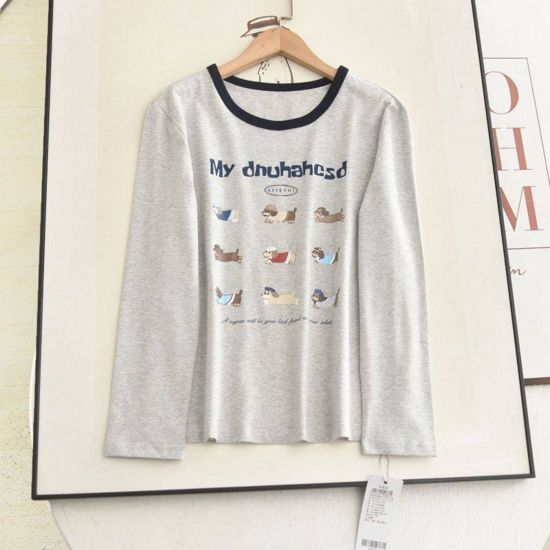恋小维女装2025秋冬新款时尚卡通印花灰色T恤休闲减龄长袖上衣 女