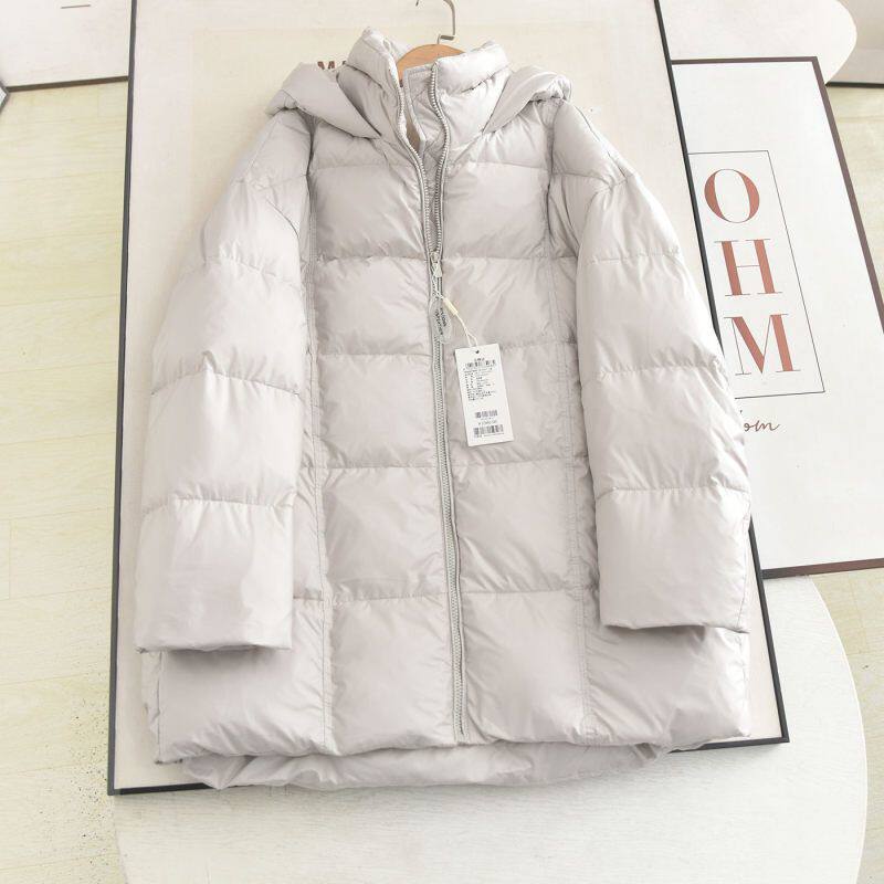 恋小维女装2025冬新款韩版宽松简约时尚连帽宽松中长款羽绒服外套