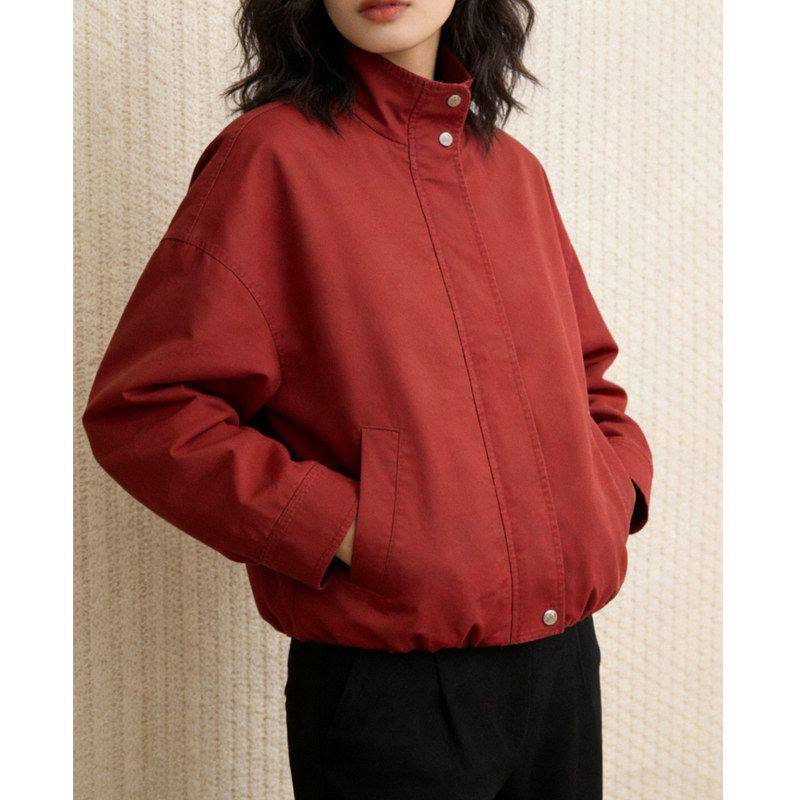 现货 新年红色立领夹克宽松休闲短款复古港风百搭外套女春Y2112