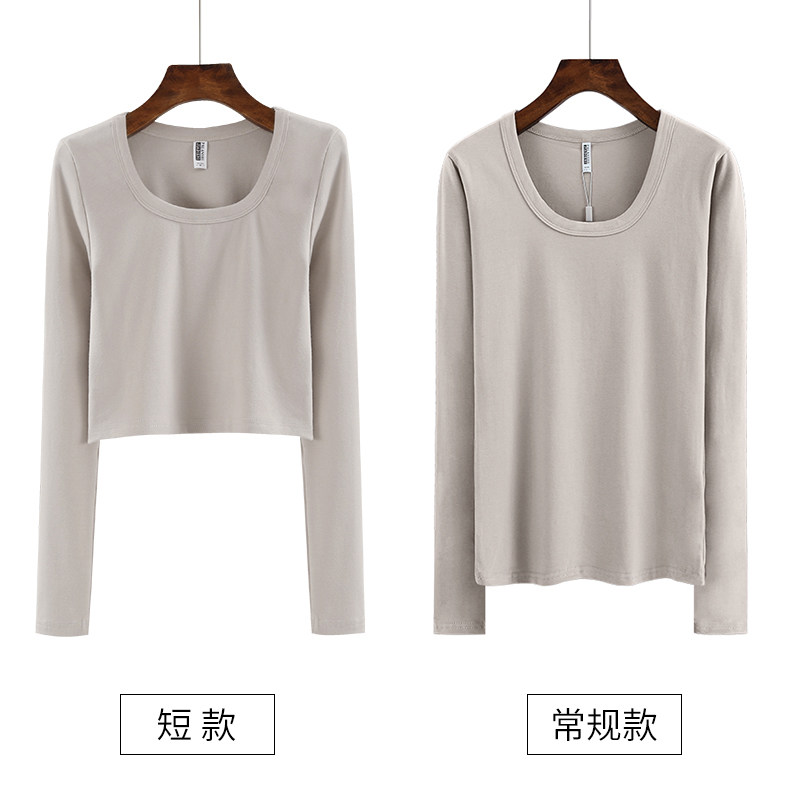 U领春秋季修身长袖内搭体恤短款露脐打底衫圆领高腰T恤纯棉上衣女