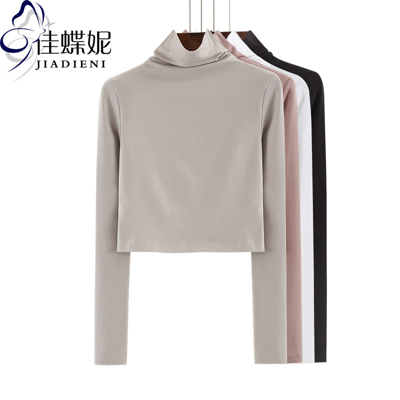 春季新款韩版高领纯白修身显瘦短款高腰长袖体恤内搭女上衣打底衫