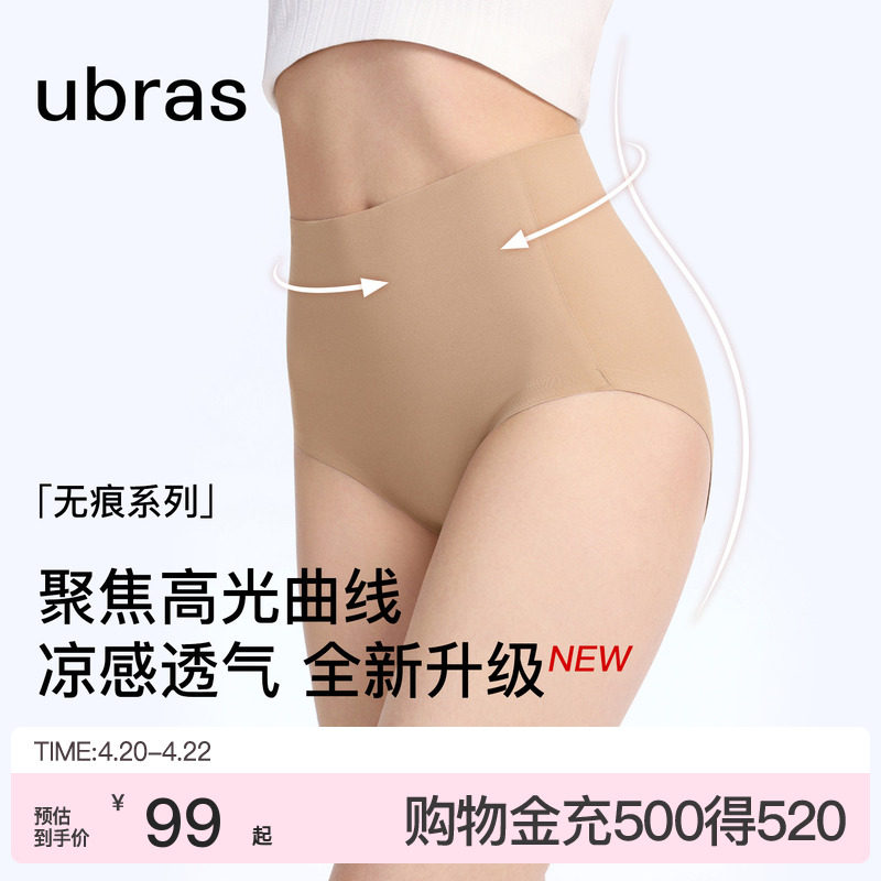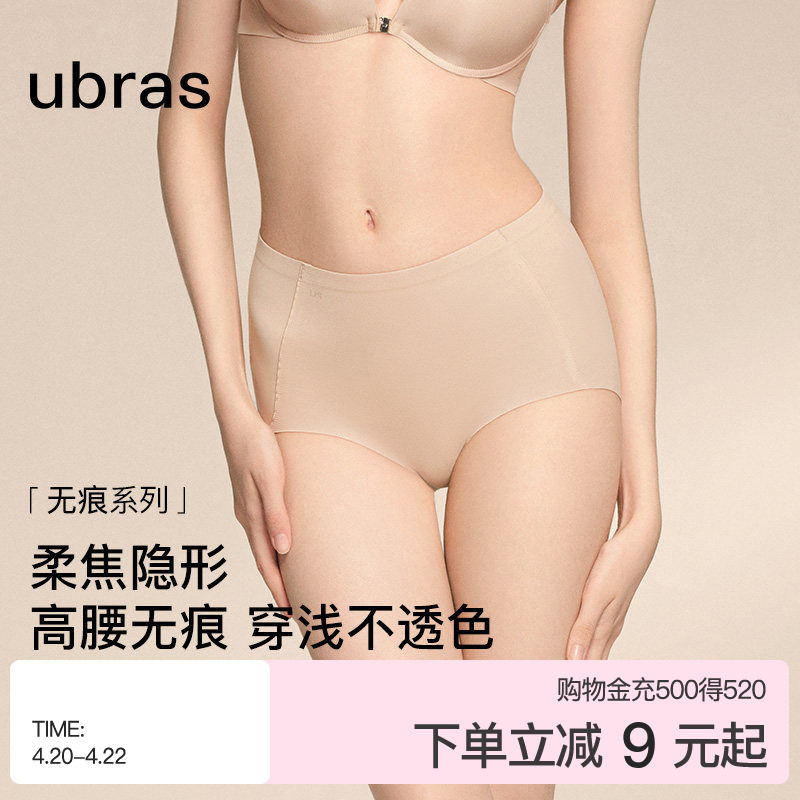 ubras中高腰粉底液无痕隐形内裤女薄款纯棉抗菌裆大码肤色三角裤