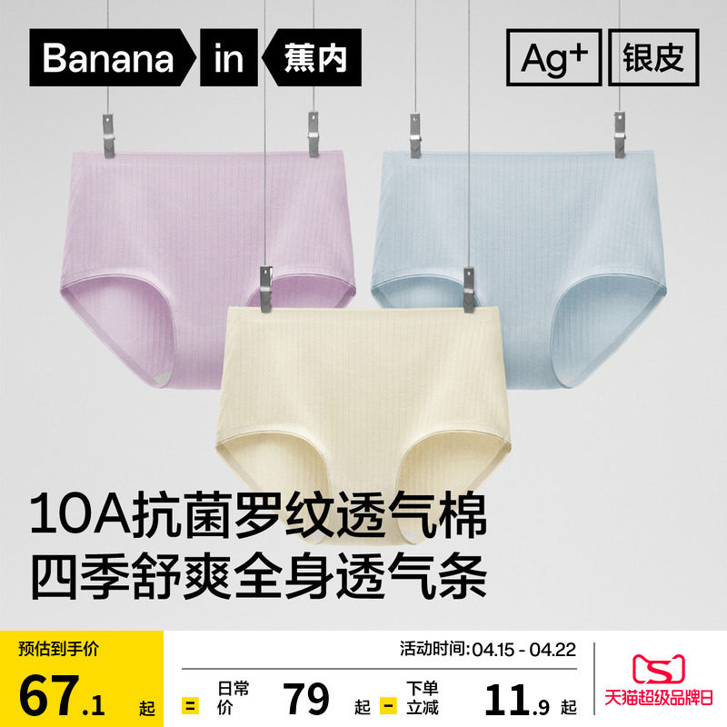 3件|蕉内银皮500E女士内裤无痕透气亲肤抗菌莫代尔三角裤大码女