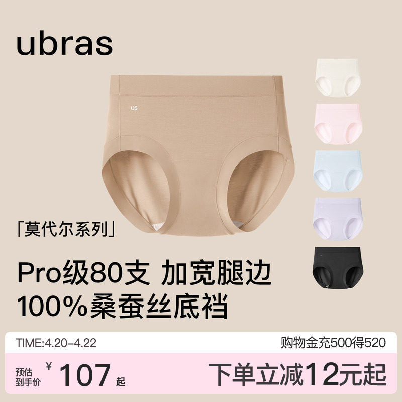 ubras莫代尔80S内裤女真丝抗菌加长裆中高腰友好梨形胯宽大码短裤