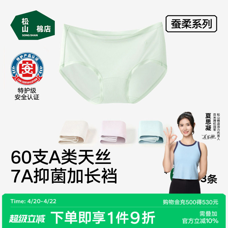 松山棉店蚕柔女士内裤天丝莫代尔加长裆抗菌不夹臀三角裤大码医护
