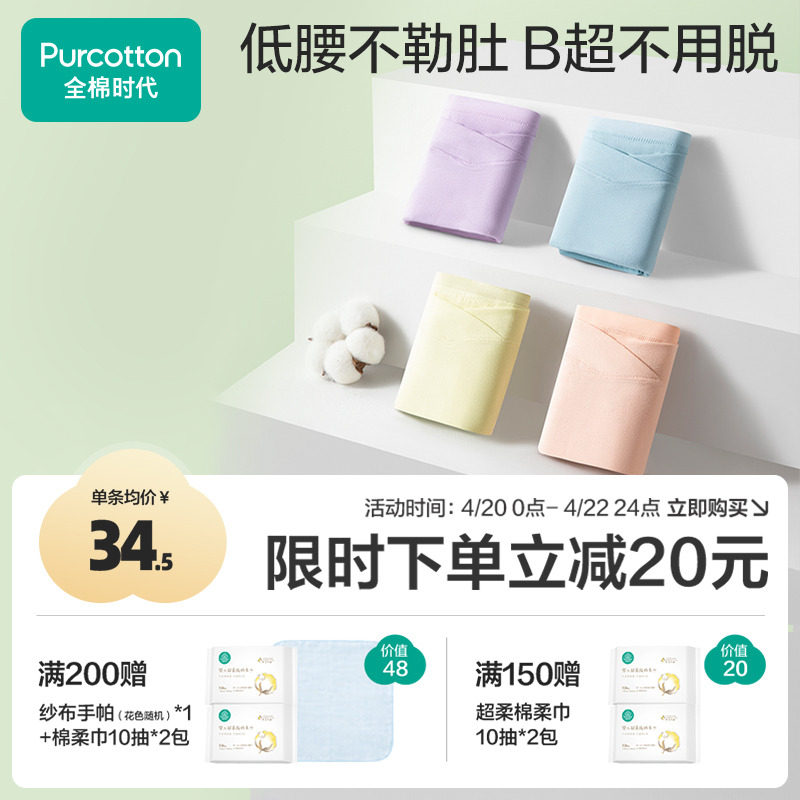 【店铺热卖】全棉时代孕妇内裤高含棉低腰全孕期专用托腹大码内裤