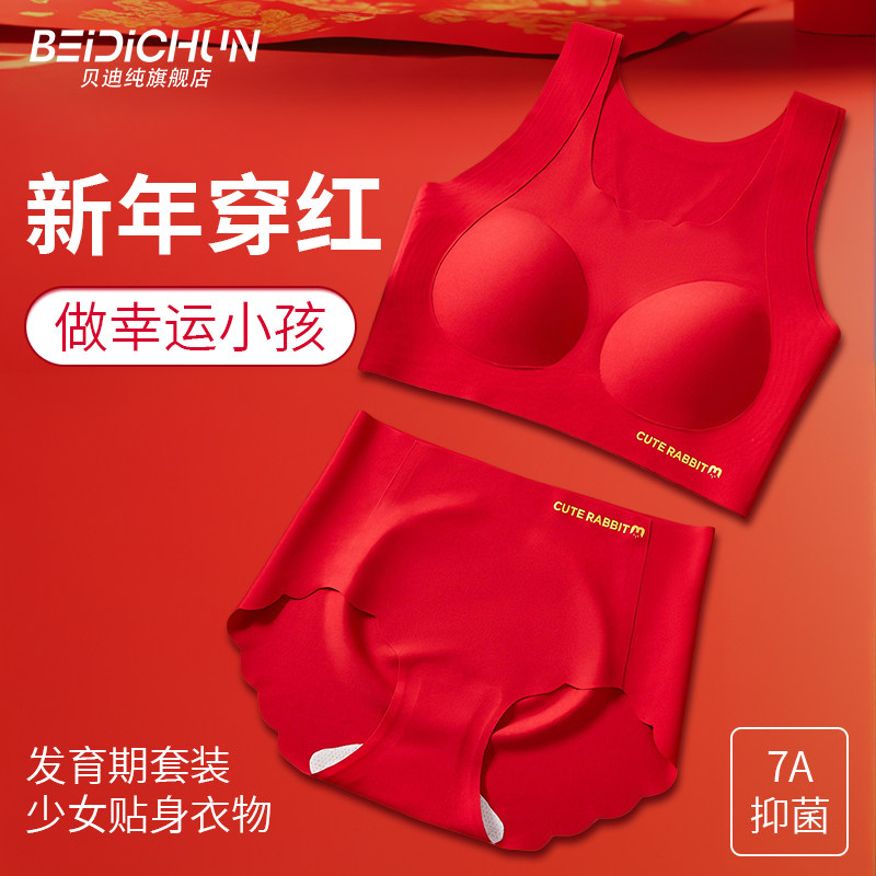 古今本命年红色内衣发育期学生儿童青少年女孩小背心少女文胸套装