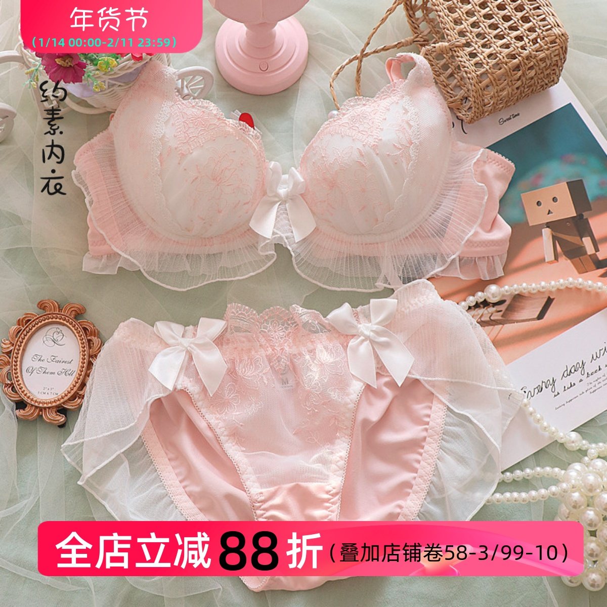 约素 流年向暖~甜美可爱蕾丝内衣少女文胸套装有钢圈聚拢纯欲日系