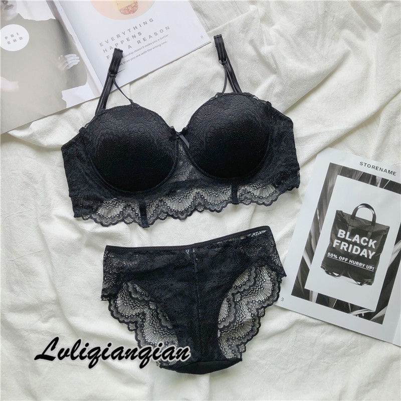 六只兔子法式蕾丝内衣女小胸聚拢显大胸罩无钢圈甜美少女文胸套装