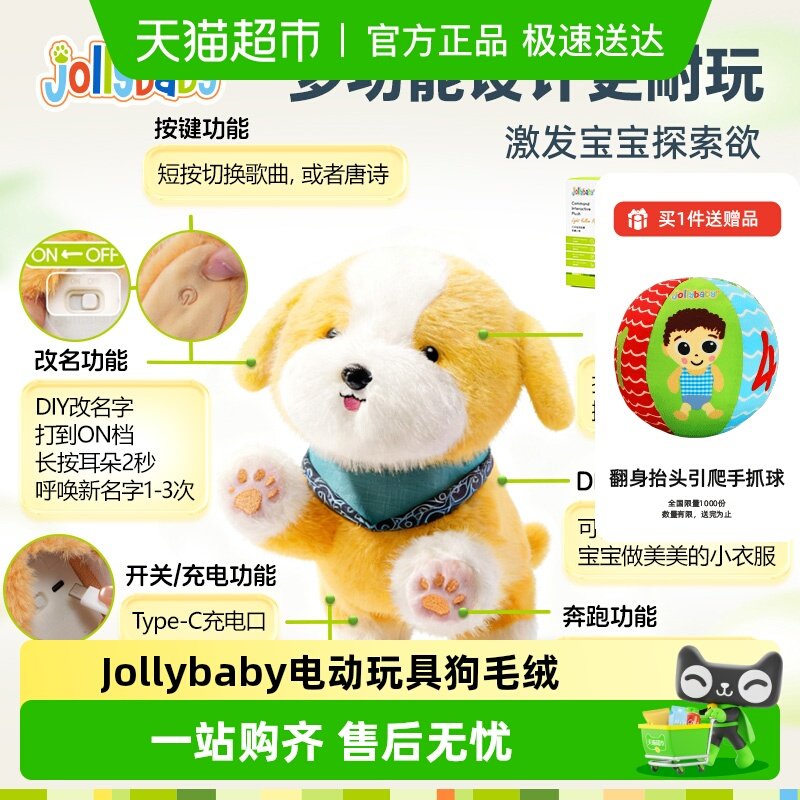 Jollybaby早教益智互动口令狗狗童婴儿电子宠物毛绒玩具周岁礼物