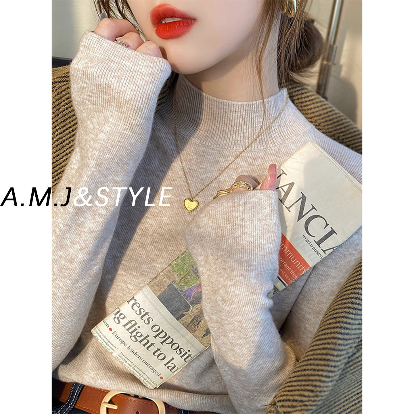 秋冬半高领修身紧身长袖打底针织衫加厚加绒内搭超好看黑色毛衣女