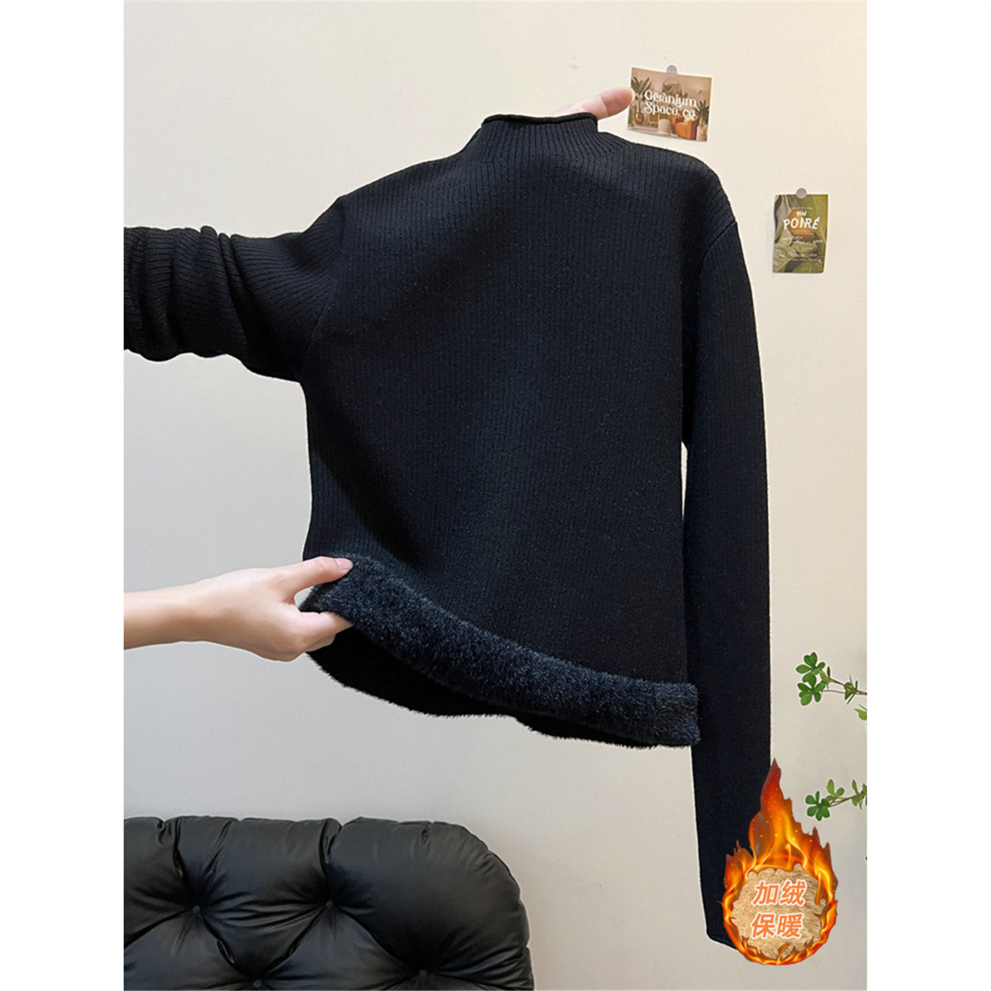 - 黑色紧身打底毛衣女