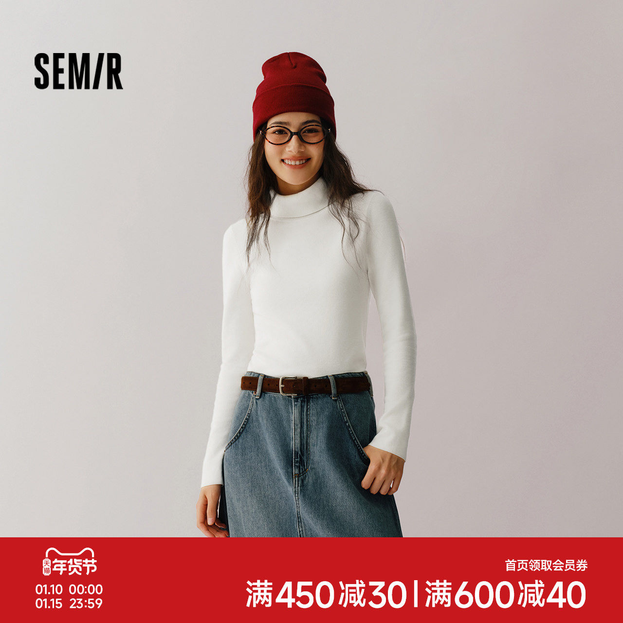 森柔毛衫|森马毛衣女白色打底衫高领紧身2025冬季纯色套头衫黑色