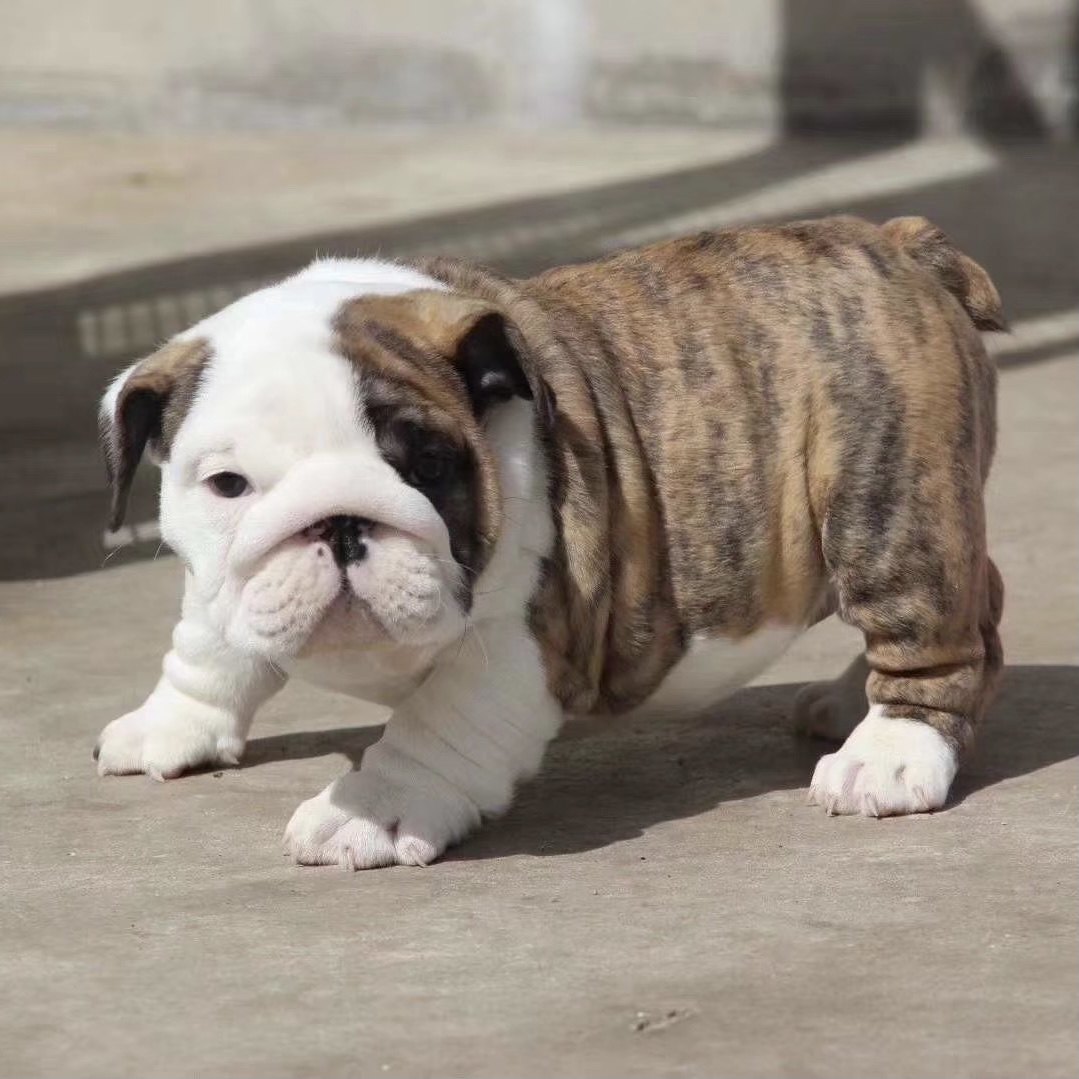 纯种英国斗牛犬黄白花英牛幼犬活体超萌活的英斗幼崽短毛宠物狗狗