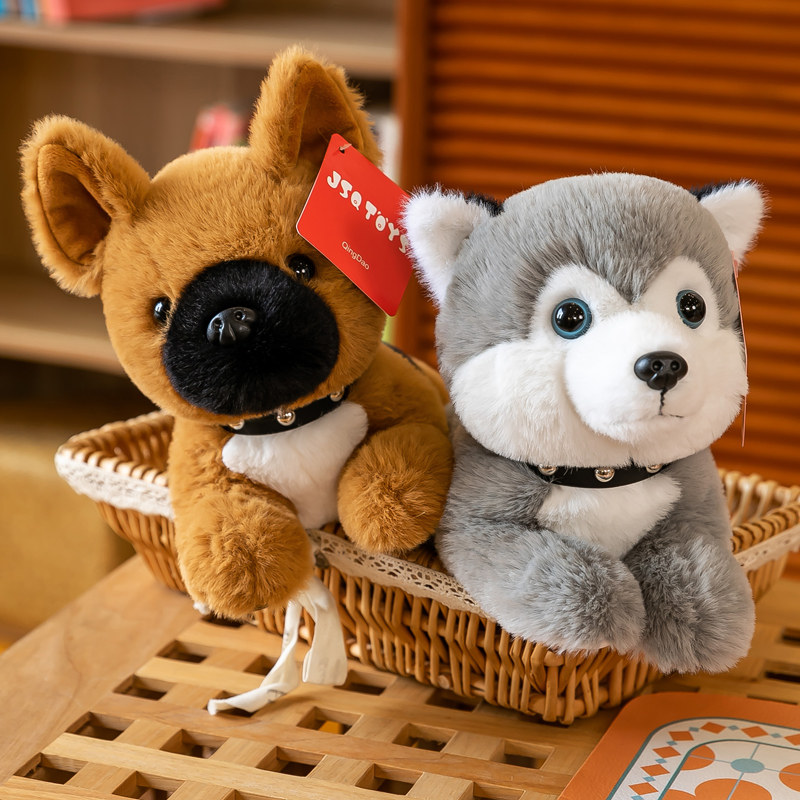 可爱哈士奇狗狗公仔趴趴小狗狗毛绒玩具卷毛斗牛犬狗玩偶儿童礼品