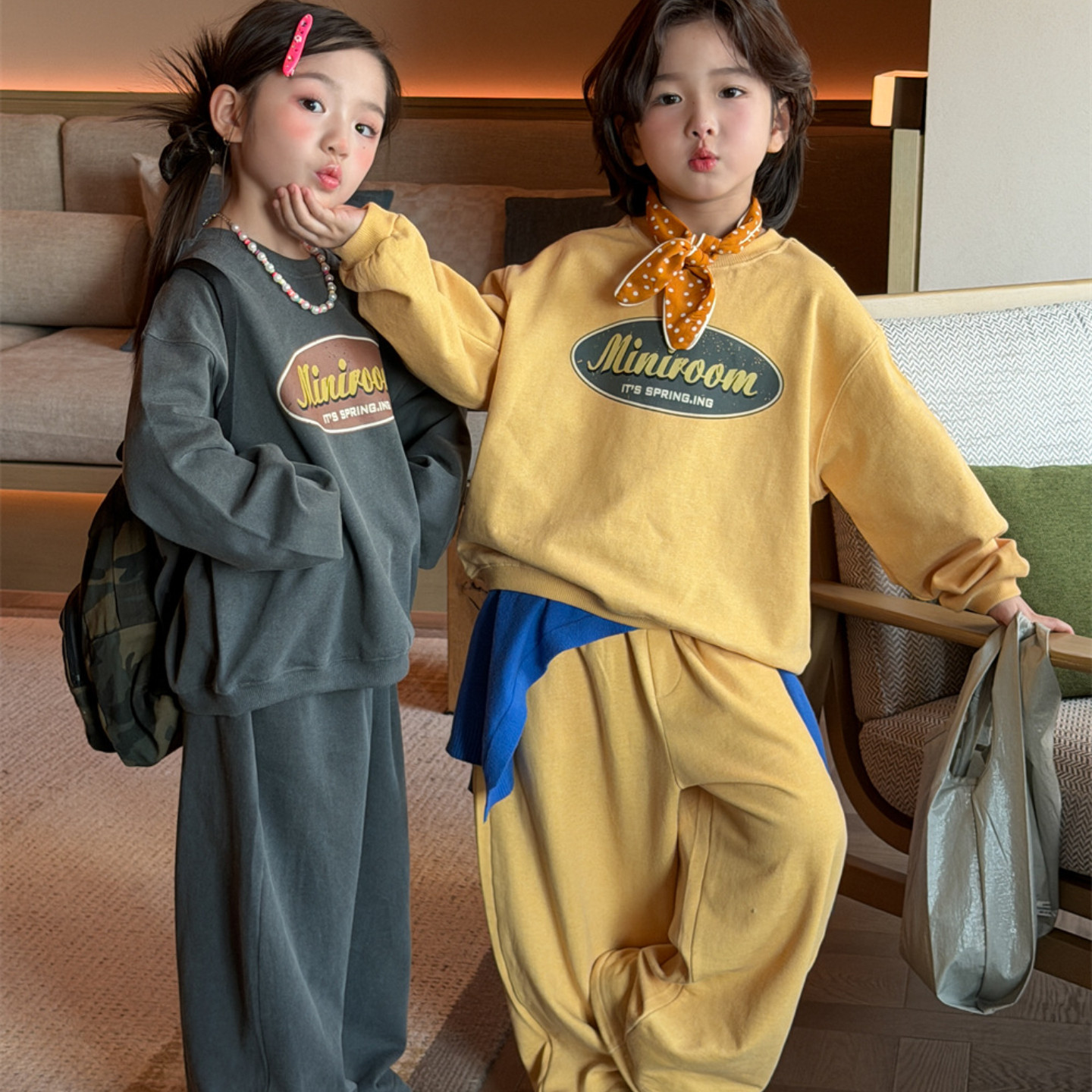 儿童套装男女童春季韩版做旧休闲卫衣裤男孩百搭宽松运动两件套潮
