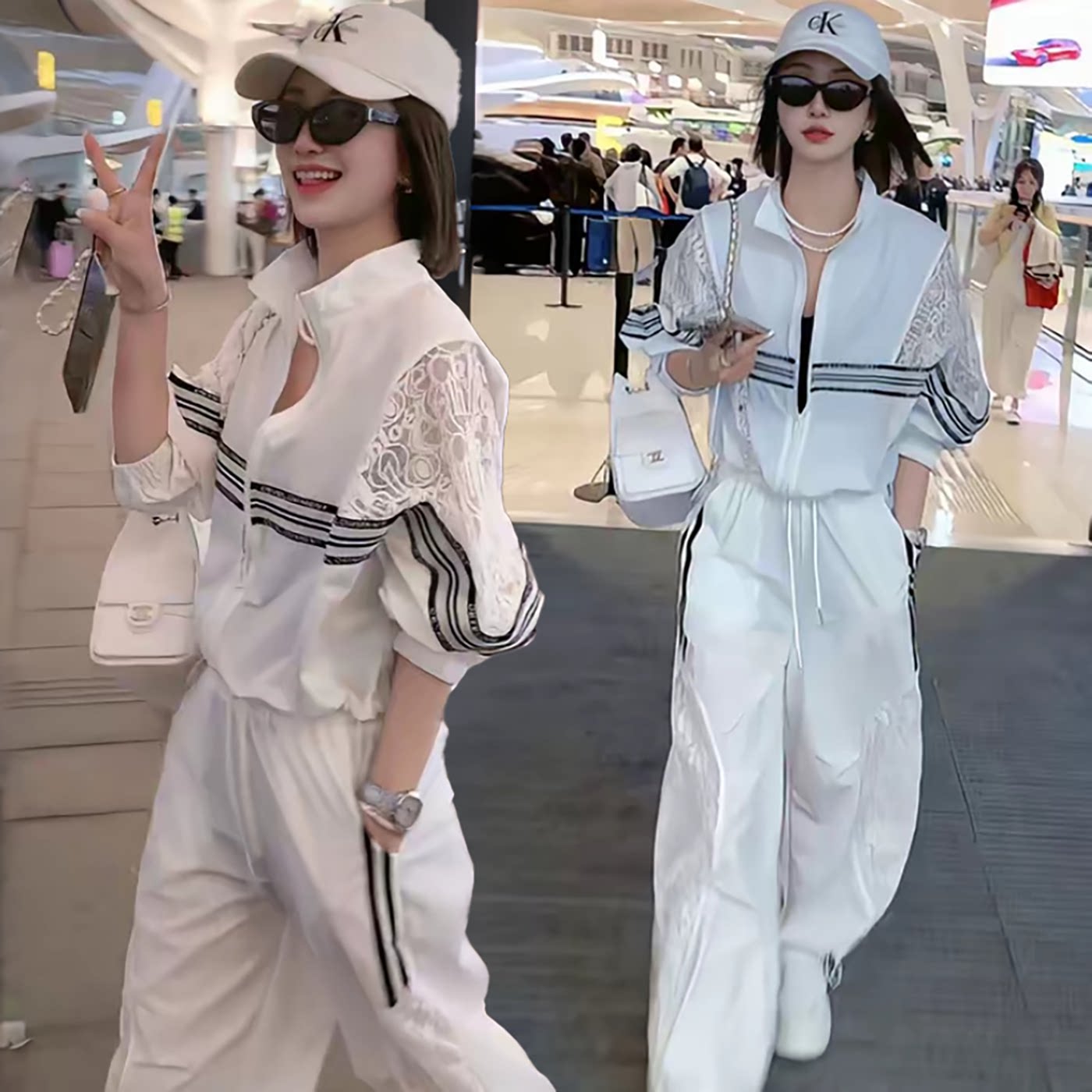 韩版镂空拼接蕾丝休闲运动套装女2026春夏新款宽松透气防晒两件套