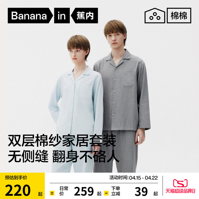 蕉内棉棉501Home女款无侧缝双层纱织家居套装纯棉男新款睡衣2026