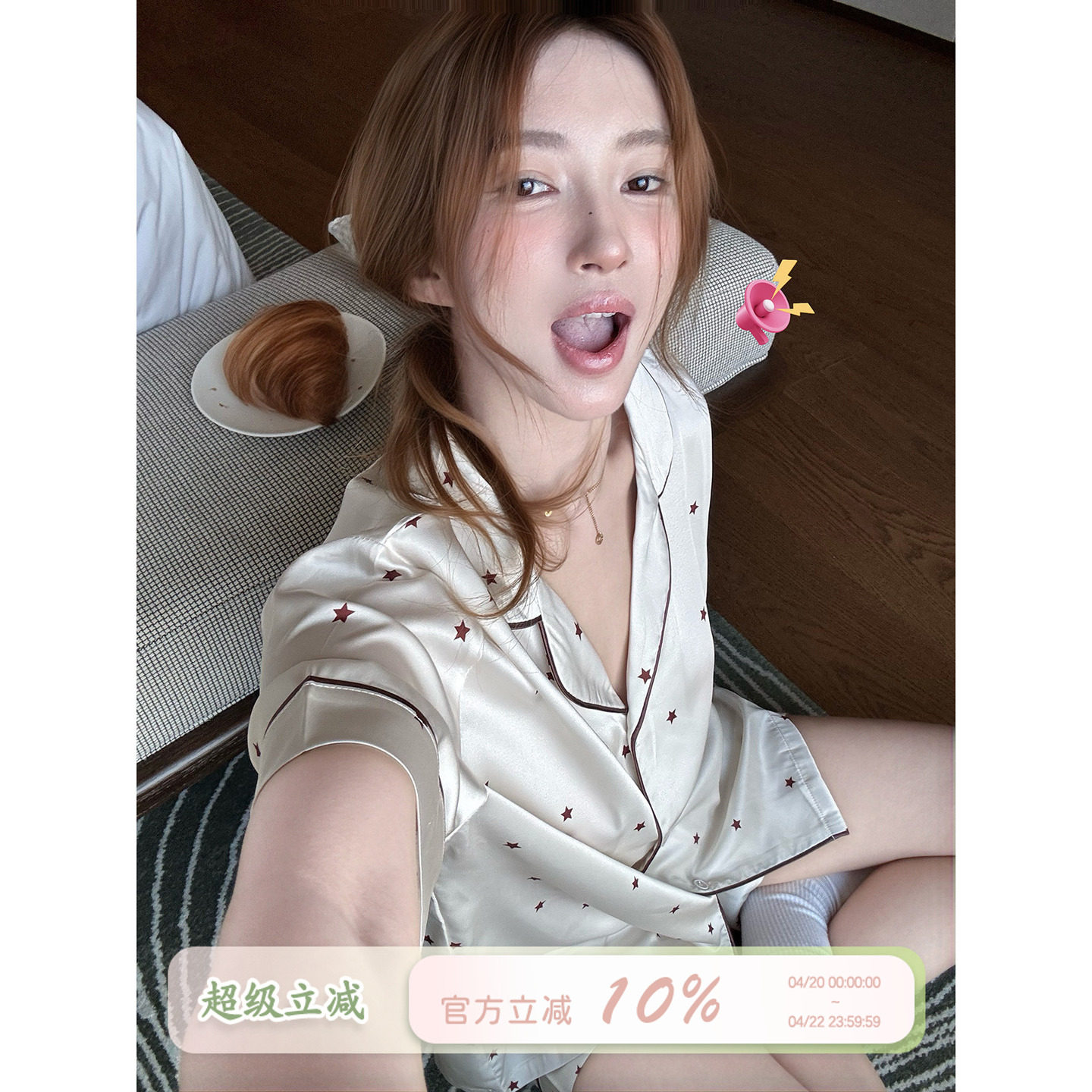 JoyceBra 韩版星星印花冰丝凉感睡衣女夏季高级感短袖家居服套装
