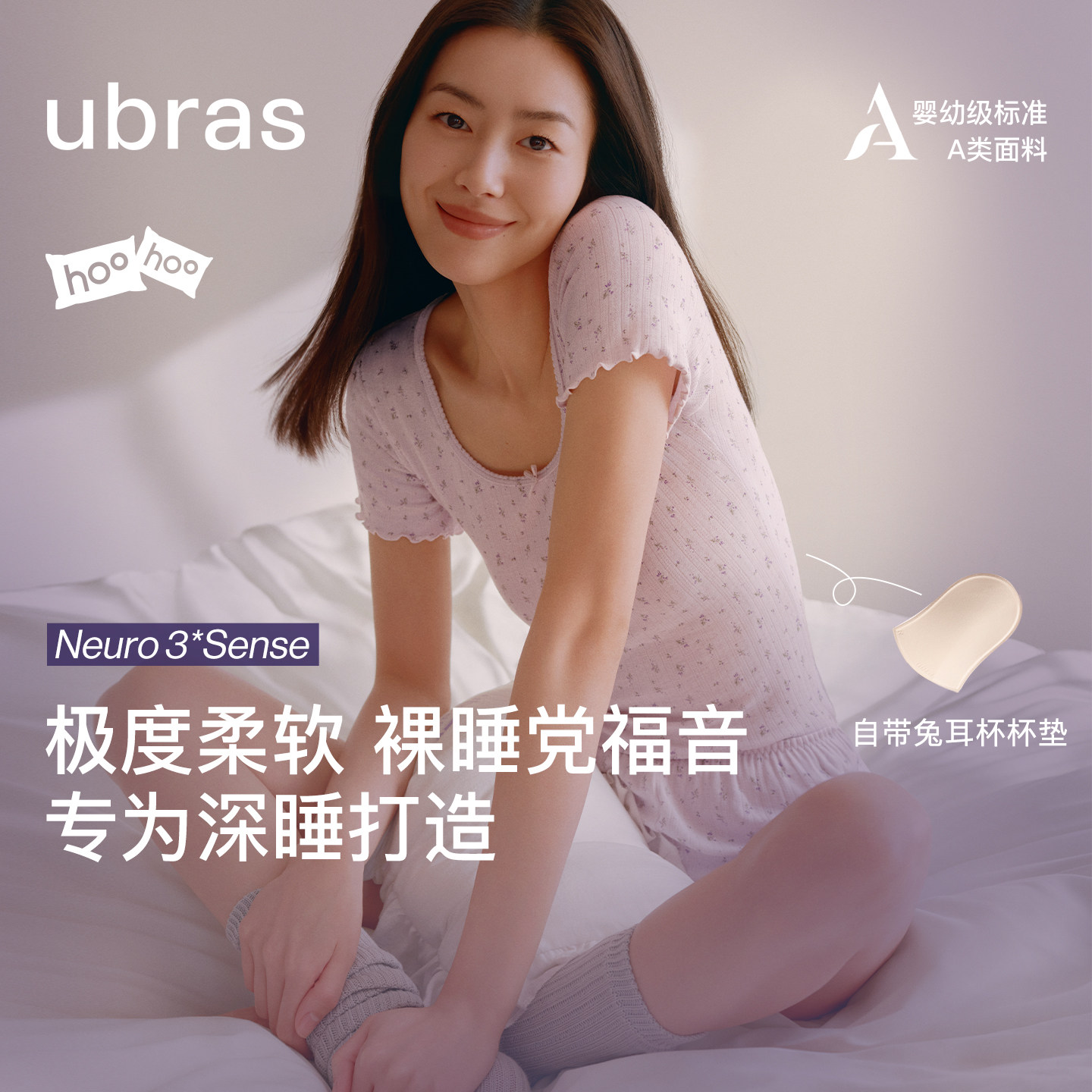 刘雯同款ubras呼呼睡衣柔软女短袖家居服吊带长袖套装带胸罩新夏