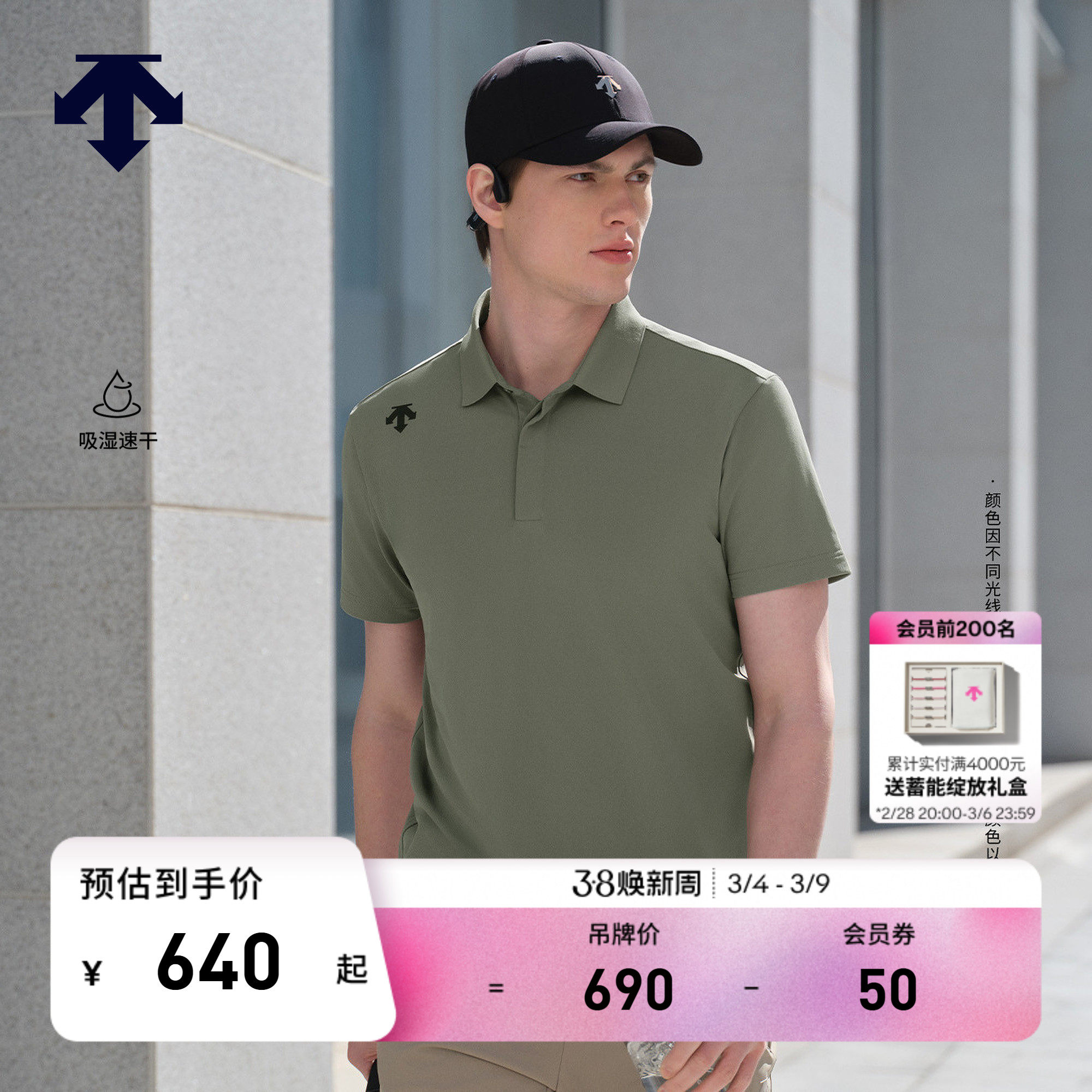 DESCENTE迪桑特TRAINING系列男士吸湿速干TOUGH短袖POLO衫新品