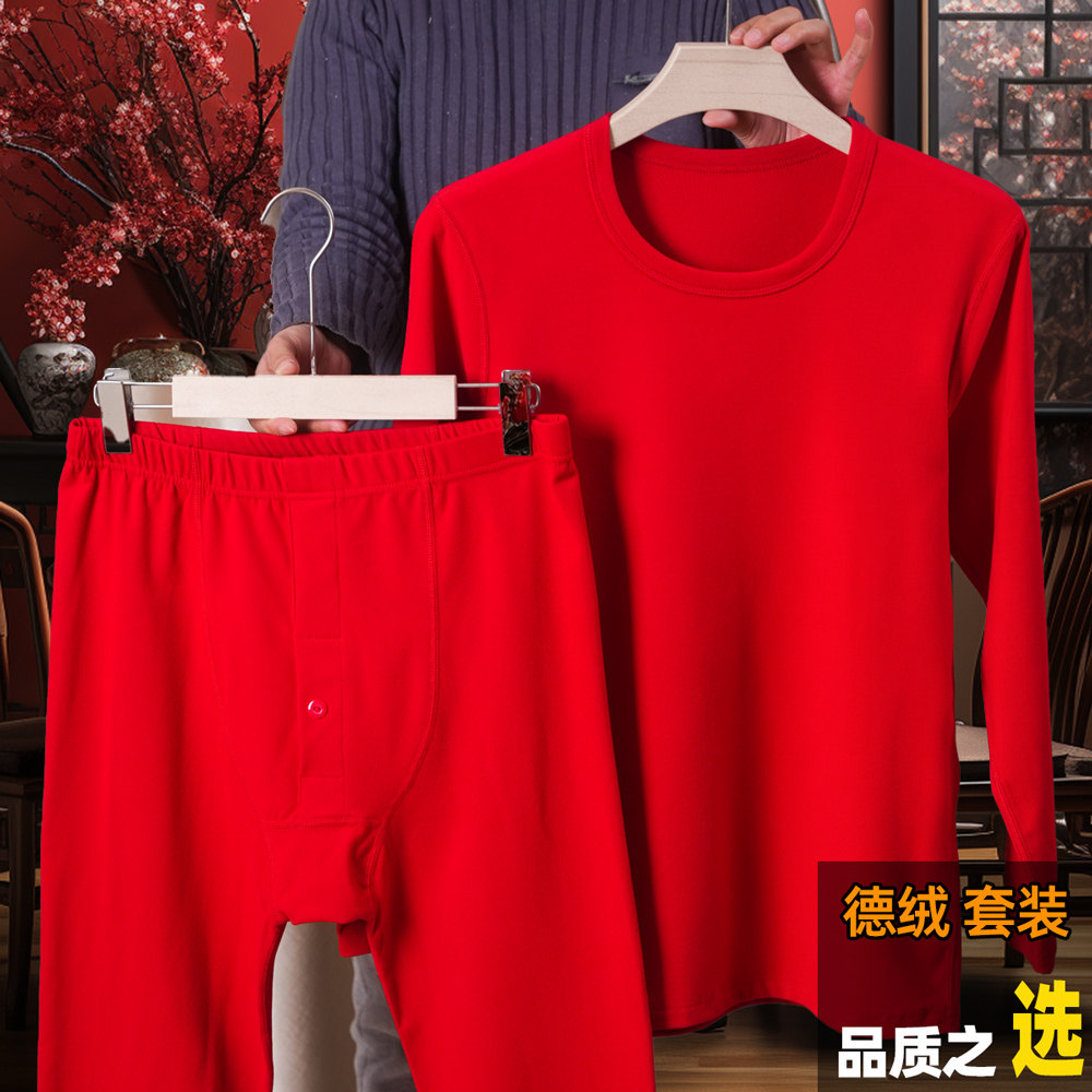 大红色本命年套装男2026马年喜庆鸿运秋衣秋裤男士德绒保暖两件套