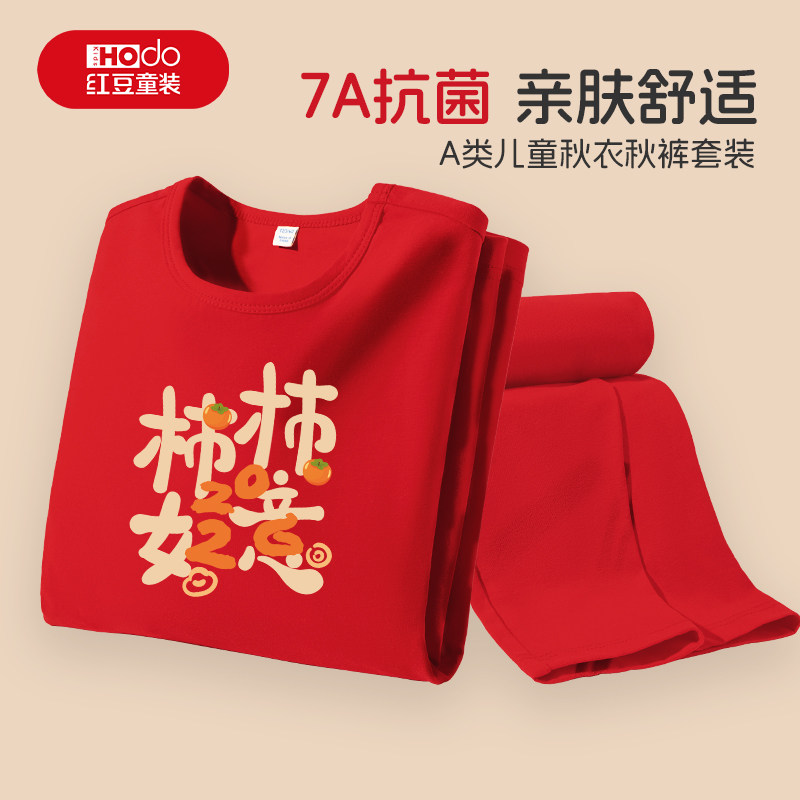 红豆童装男童红色秋衣秋裤男大童新年冬季家居服儿童本命年套装男