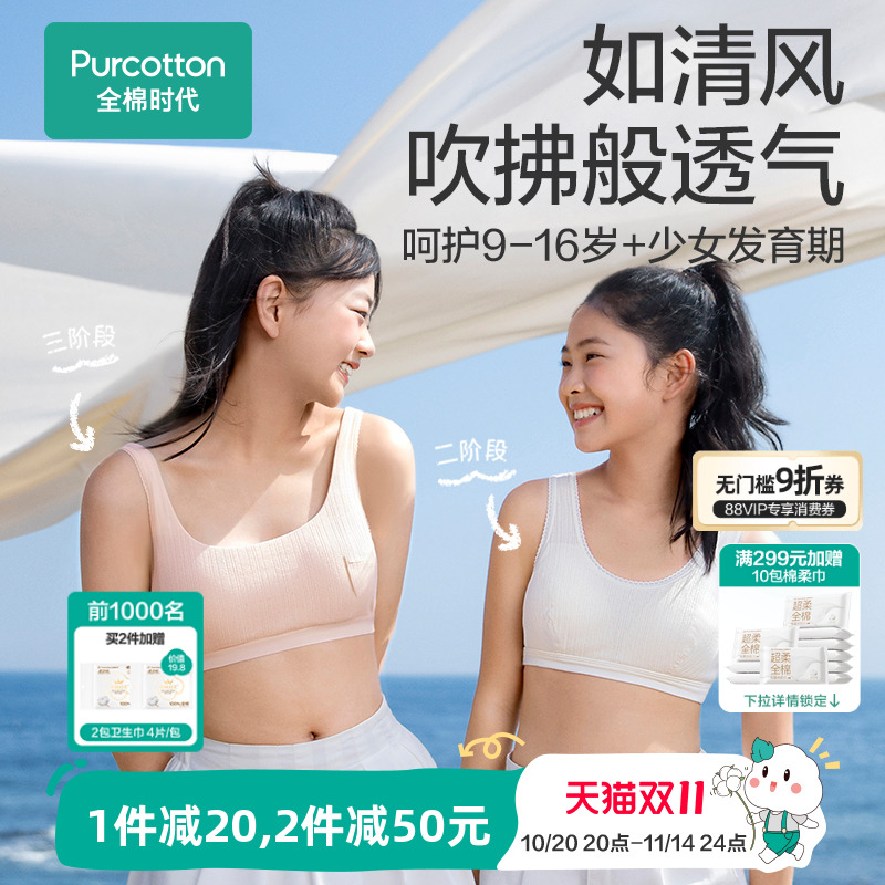 【透气款】全棉时代少女内衣文胸一二三阶青春期女童学生发育内衣