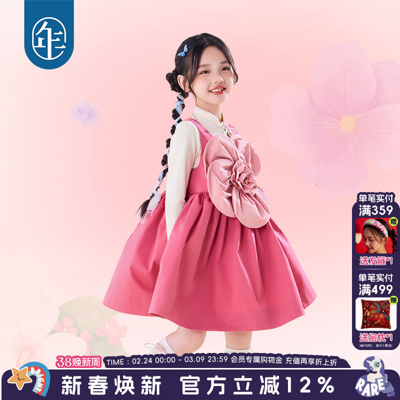 女童连衣裙秋冬背带裙子背心裙女宝宝周岁礼服喜庆新年拜年服童装