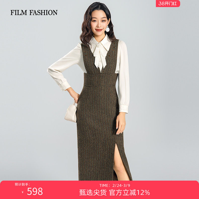 一电影一时装2025冬季新款复古气质背心连衣裙背带裙女超好看冬装