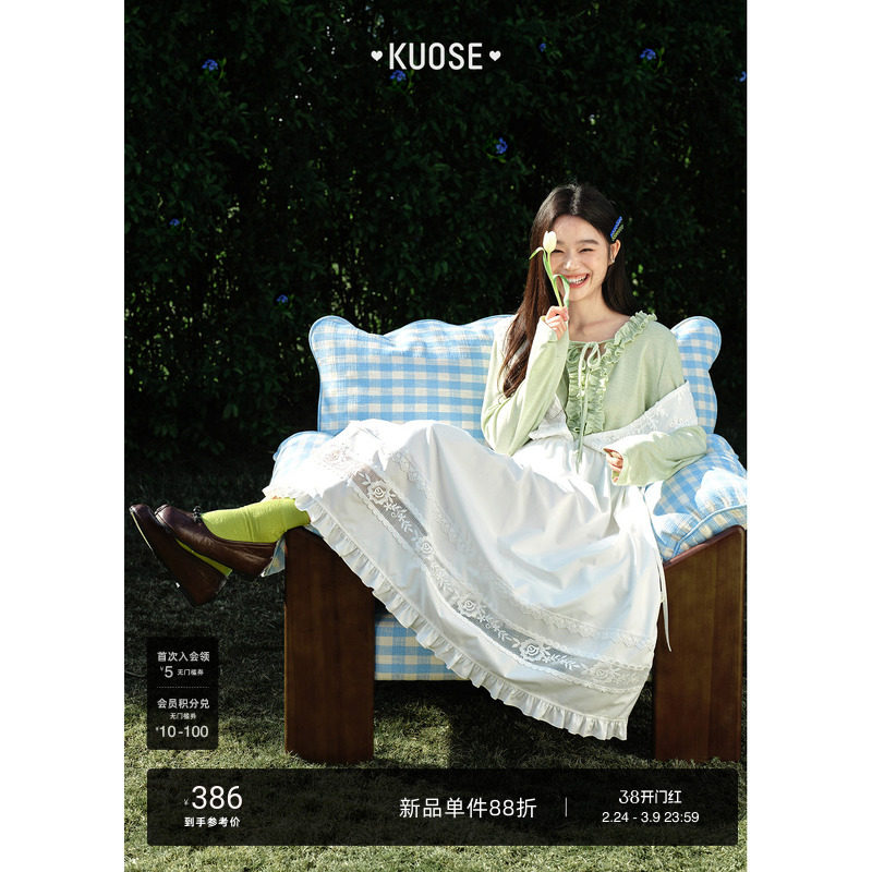 阔色法式背心裙背带收腰连衣裙蕾丝拼接26春夏季新款女长裙白裙子