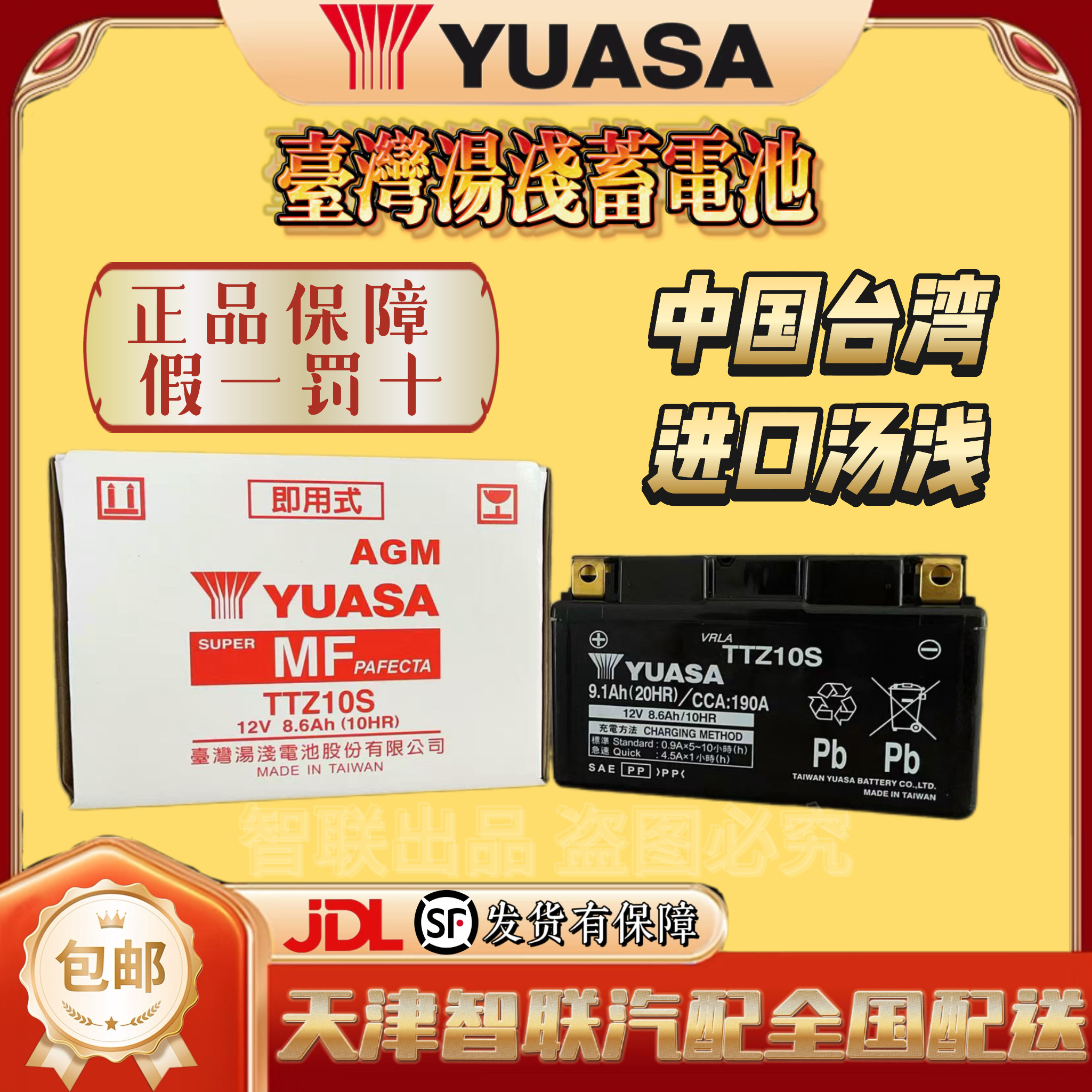 YUASA汤浅蓄电池台湾进口AGM原装摩托车电池12V免维护电瓶大排量