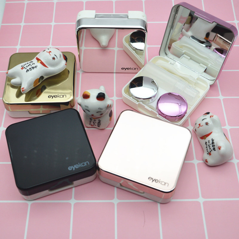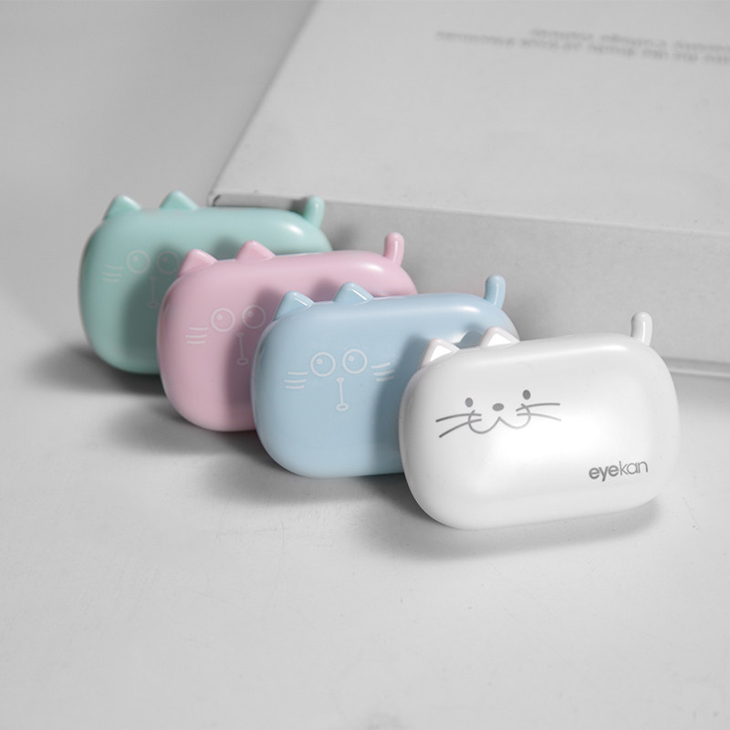 eyekan凯达隐形眼镜盒可爱萌猫少女心ins美瞳盒简约纯色双联盒zy