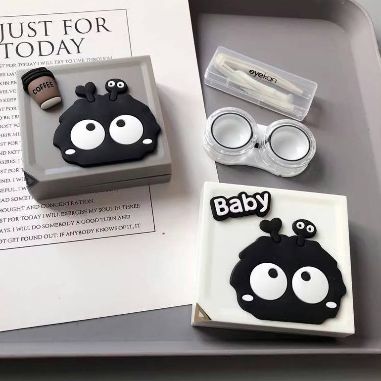 磁吸防漏升级款 隐形眼镜盒黑煤球ing风收纳盒可爱美瞳盒男女通用