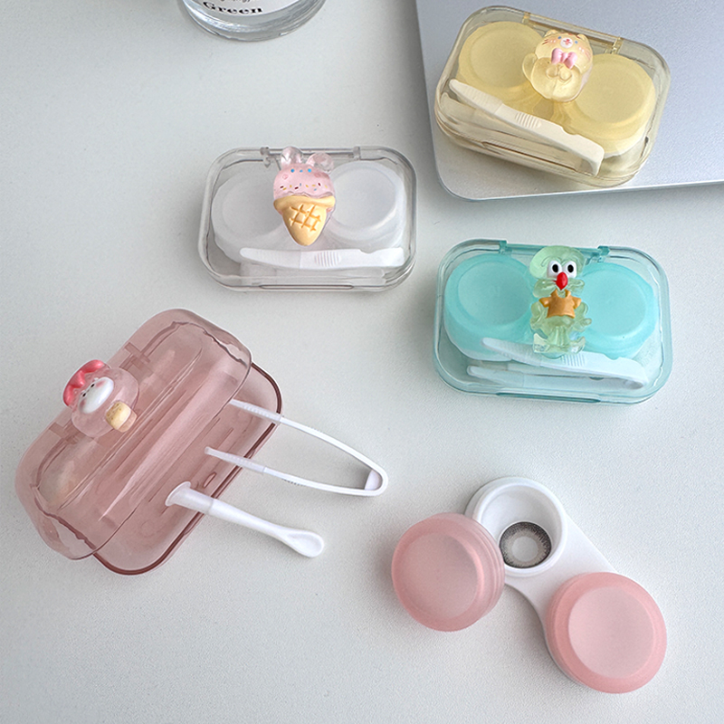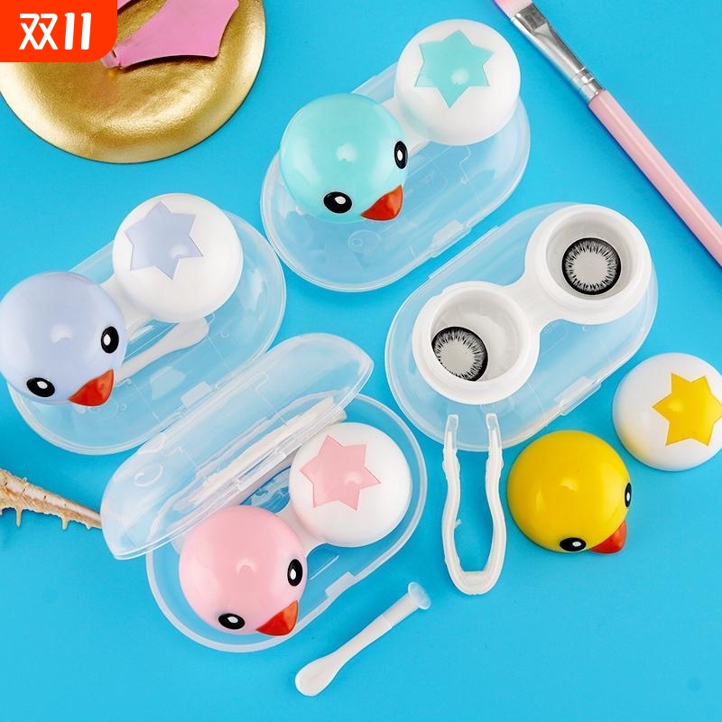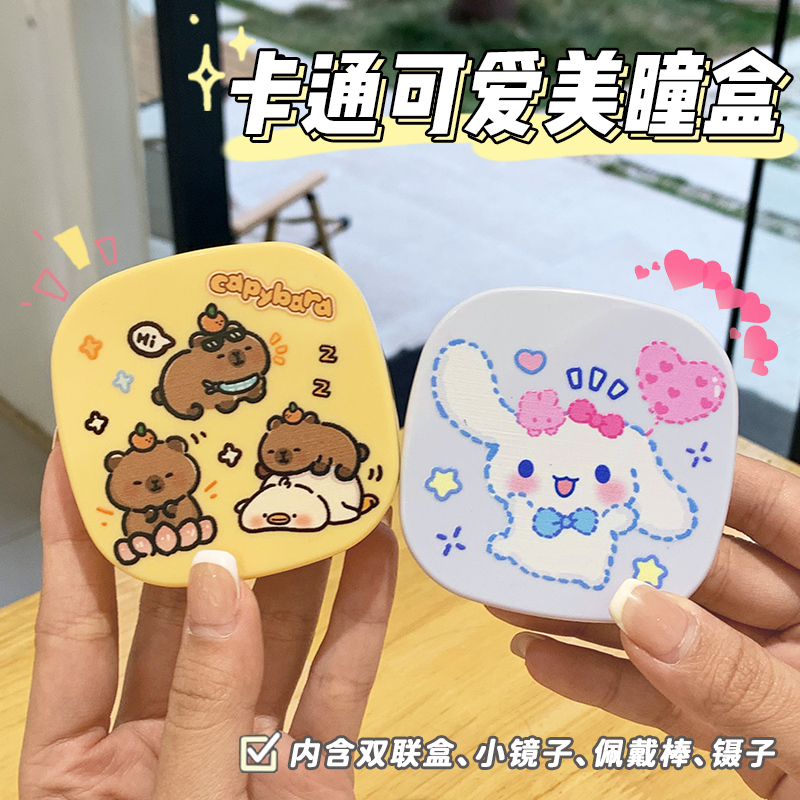 隐形眼镜盒子卡通美瞳盒收纳盒高级感便携护理盒伴侣盒可爱双联盒