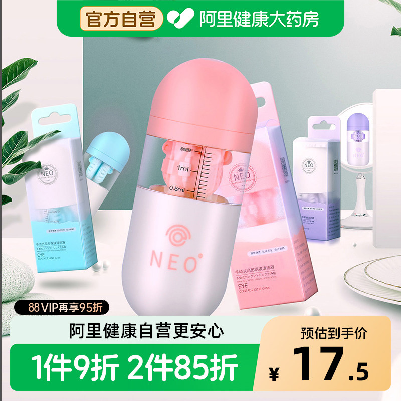 neo可视眸隐形眼镜清洗器美瞳盒子女手动伴侣盒含吸棒取戴器可爱